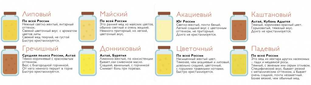 Но в контексте этого разговора стоит, все же, рассказать какой из сортов, в какое время года, какой консистенции должен быть. Так, если летом вам предлагают свежий продукт этого года, знайте, что он просто обязан быть жидким. Исключение имеет лишь рапсовый — собранный весной, к концу лета он уже становится твердым.