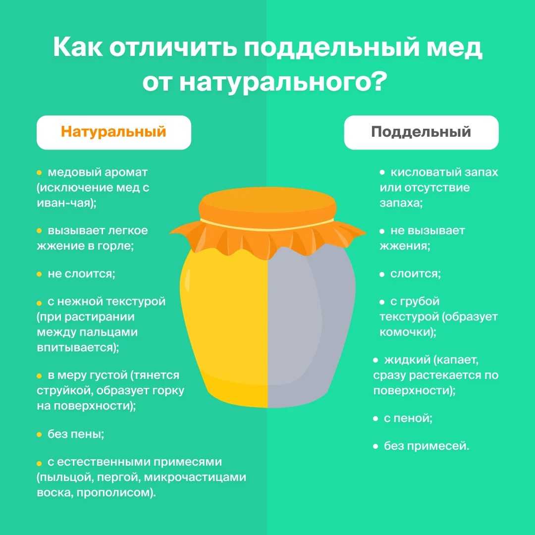 В целях получения выгоды недобросовестные производители применяют несколько методов для скрытия поддельности меда. Они скармливают сахарный сироп пчелам, разводят продукт сахарным сиропом и патокой с лимонной кислотой, выпаривают соки из фруктов и ягод (к примеру, арбуз, дыня, виноград), добавляют другие компоненты в виде муки, крахмала, мела, песка и даже древесных опилок. Поэтому перед покупкой стоит узнать о некоторых признаках качественного меда.