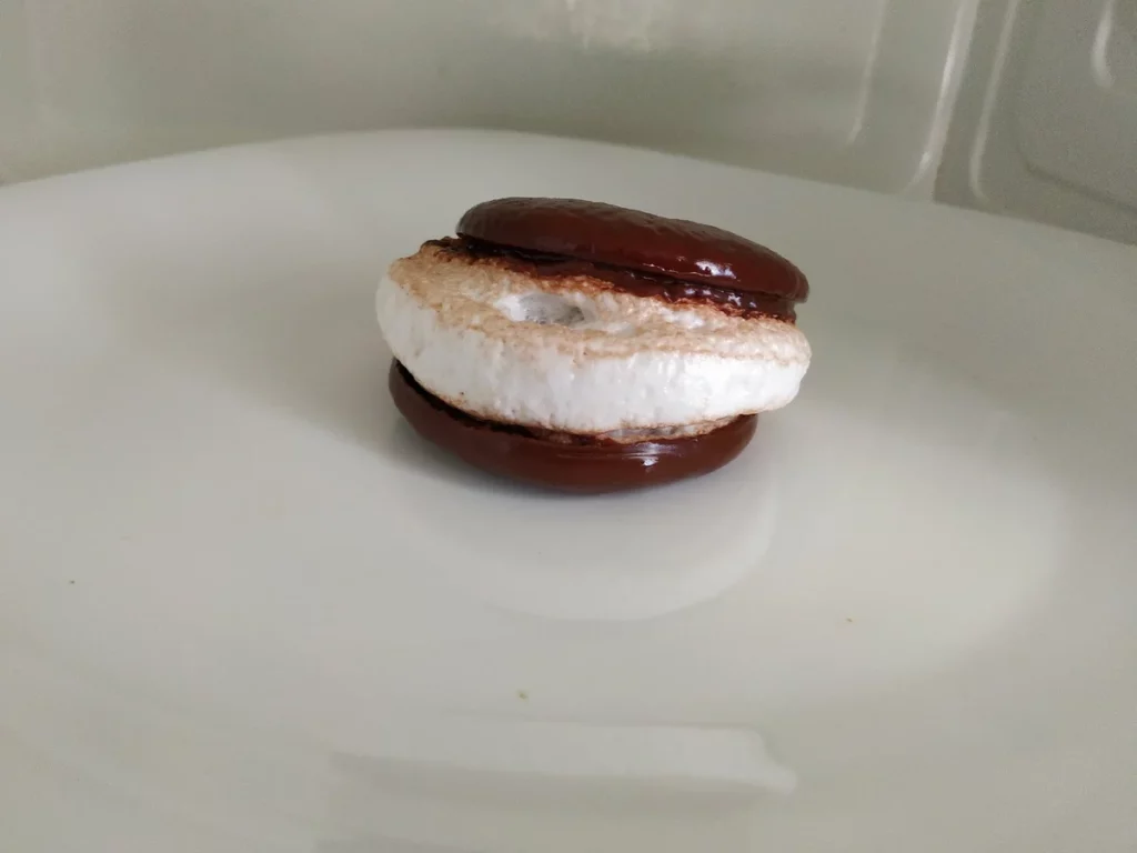 Перекладываем в кондитерский мешок и отсаживаем на одну половинку бисквитного кружочка.