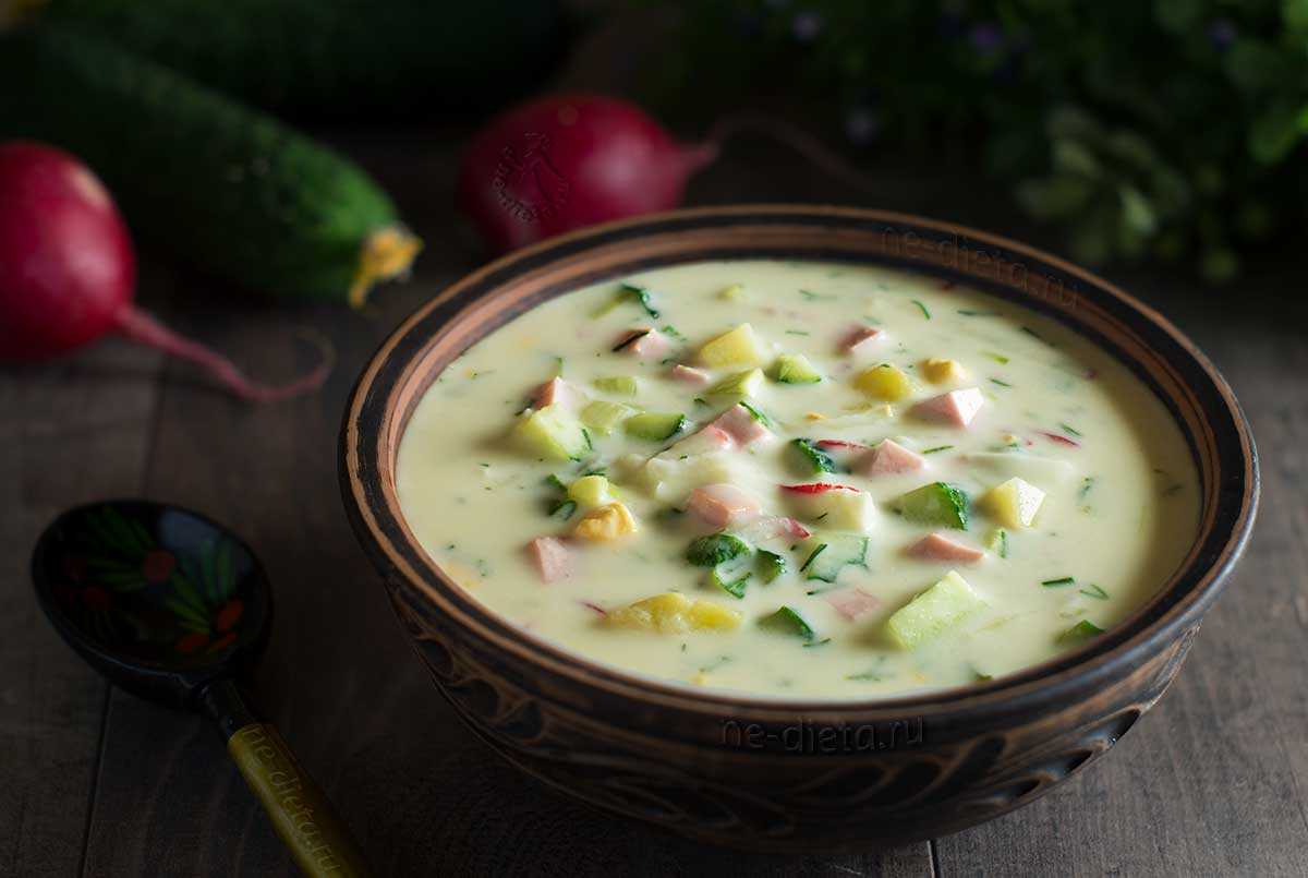 Рецепт 2: окрошка с колбасой и картошкой (с фото)