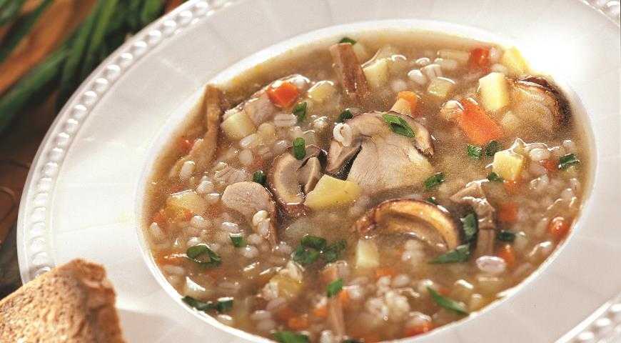 Это лучшая засыпка для грибного супа. Сколько варить в нем перловку? Вымоченную крупу залейте холодной водичкой. Когда вода забурлит, засеките время. Варите 20-30 минут на умеренном огне по полуготовности. Забросьте нарезанные грибы. Через 15 минут забросьте картофель, натертую морковь, лучок. Еще через четверть часа (картофель должен свариться), бросайте зелень. Общее время варки крупы составит 50 минут — 1 час.