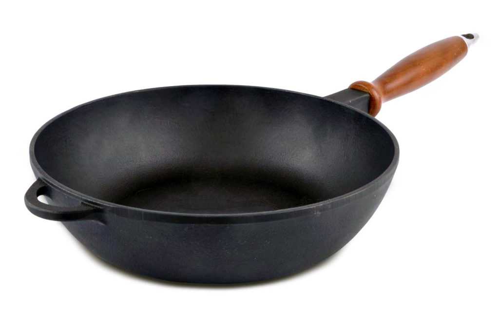 Многие считают, что старый добрый чугун очень хорош: сковороды не изнашиваются, служат почти вечно, не деформируются, хорошо держат тепло. Надеемся вы помните, что чугун (в нем содержится 97-98% железа) ржавеет без специального ухода – регулярного прокаливания и смазывания маслом. Чугун – сплав пористый, поэтому уход за посудой из чугуна будет особый.